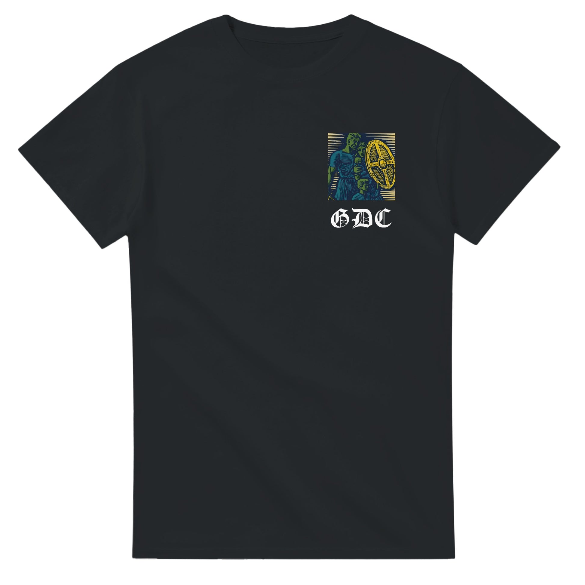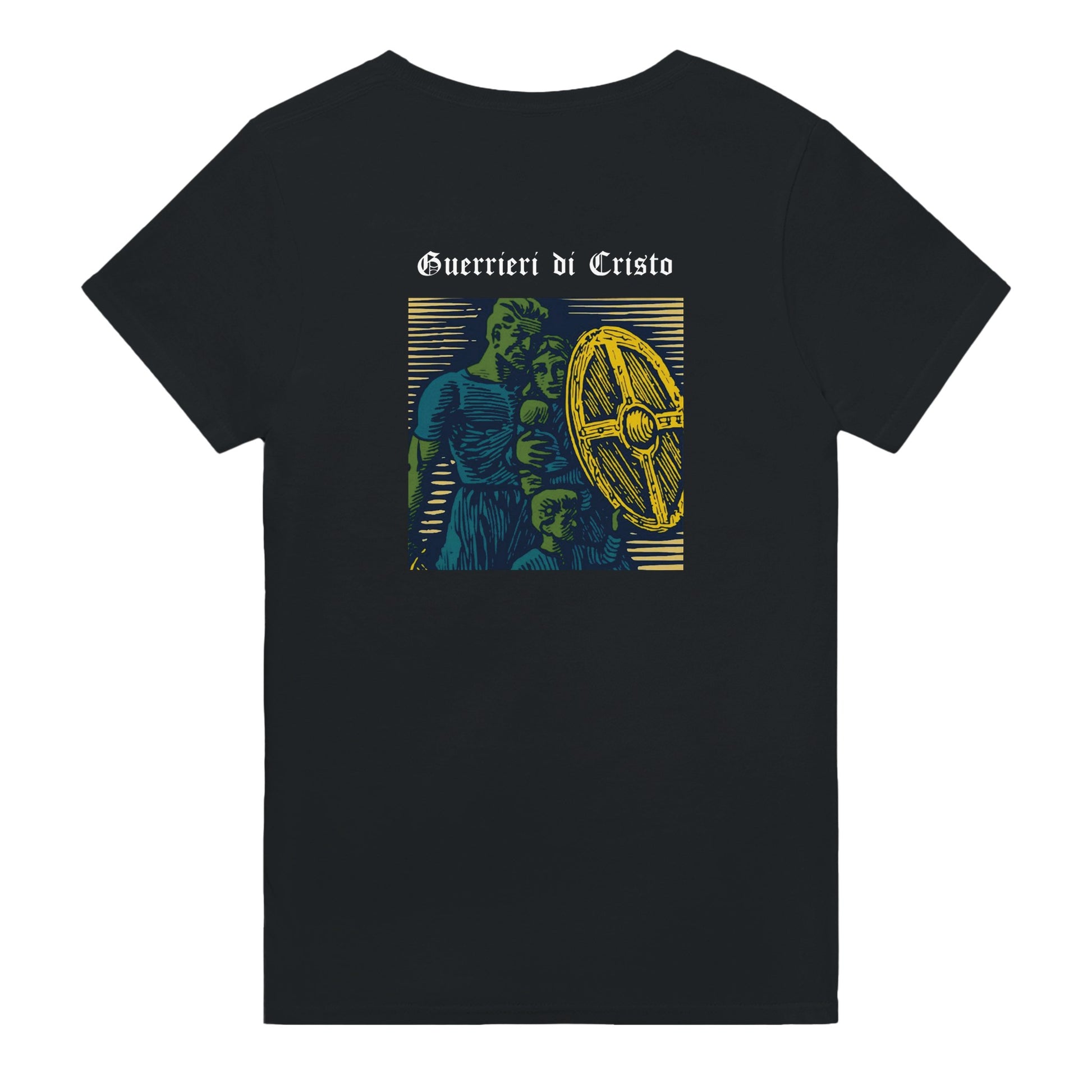 Una maglietta 100% cotone, pensata per chi vuole promuovere la verità. Davanti, un piccolo simbolo di famiglia e salute: GDC. Dietro, la medesima immagine ingrandita, con l'aggiunta del titolo Guerrieri di Cristo.